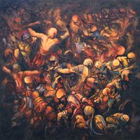 The recurrence of phenomena closely linked to humanity and nature is increasingly reflected in the works. The battle scenes, which depict suffering, cruelty, and the current state of affairs, are a means to achieve better living conditions.